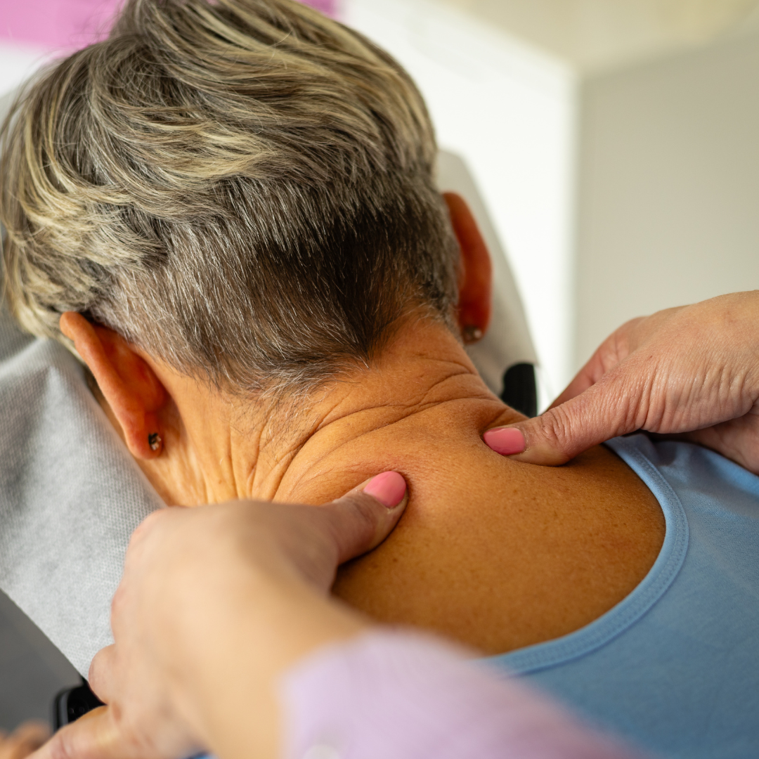 Strakke nek- en schouderspieren kunnen hoofdpijn veroorzaken of verergeren. Door die spieren los te maken, vermindert vaak de druk in het hoofd.