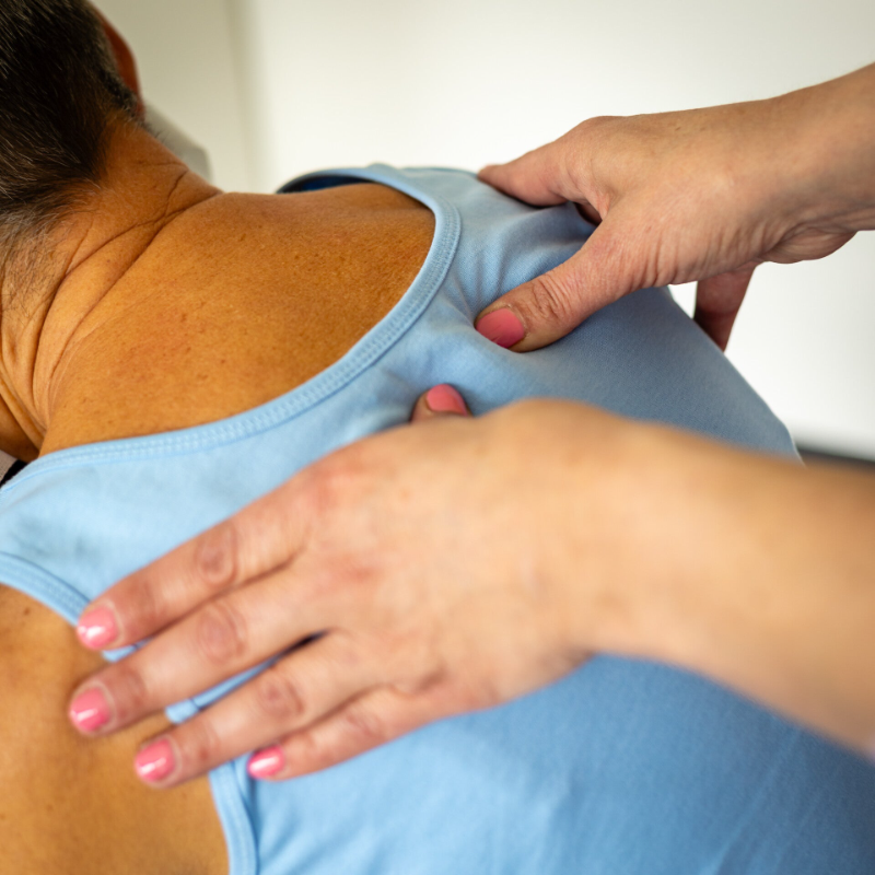 Helpt bij vastzittende spieren in de nek en schouders, vaak veroorzaakt door stress, tillen of lang zitten.